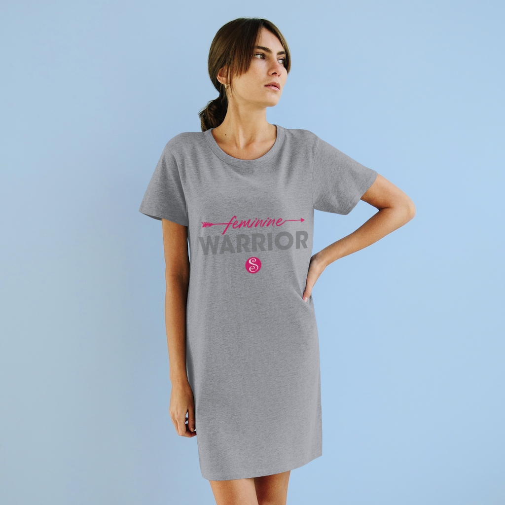 The organic cotton t-shirt dress is made of 100% ringspun cotton – a comfortable and durable fabric. All materials are grown and gathered without the use of pesticides. This short-length t-shirt dress has a scoop neck, and all seams are reinforced with double-needle hems.